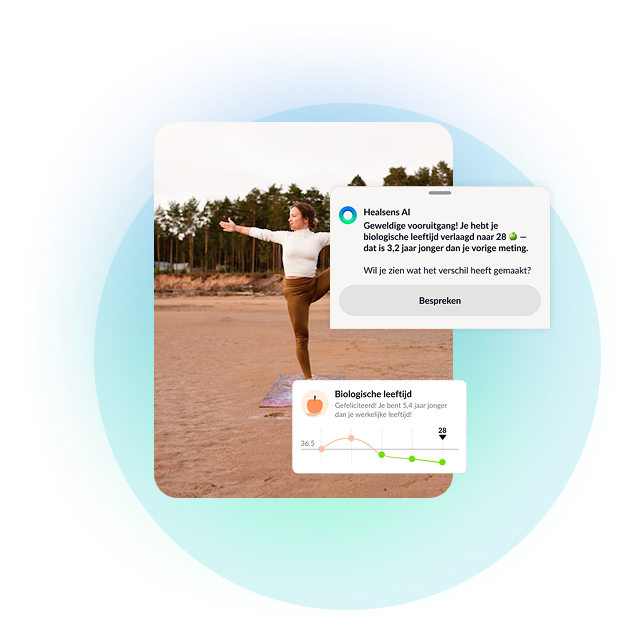 Healsens laat zien hoe je gewoonten je healthspan beïnvloeden — met echte biomarkers, trends en inzichten in je biologische leeftijd. Gezondheidsoptimalisatie met betekenis, geen giswerk.